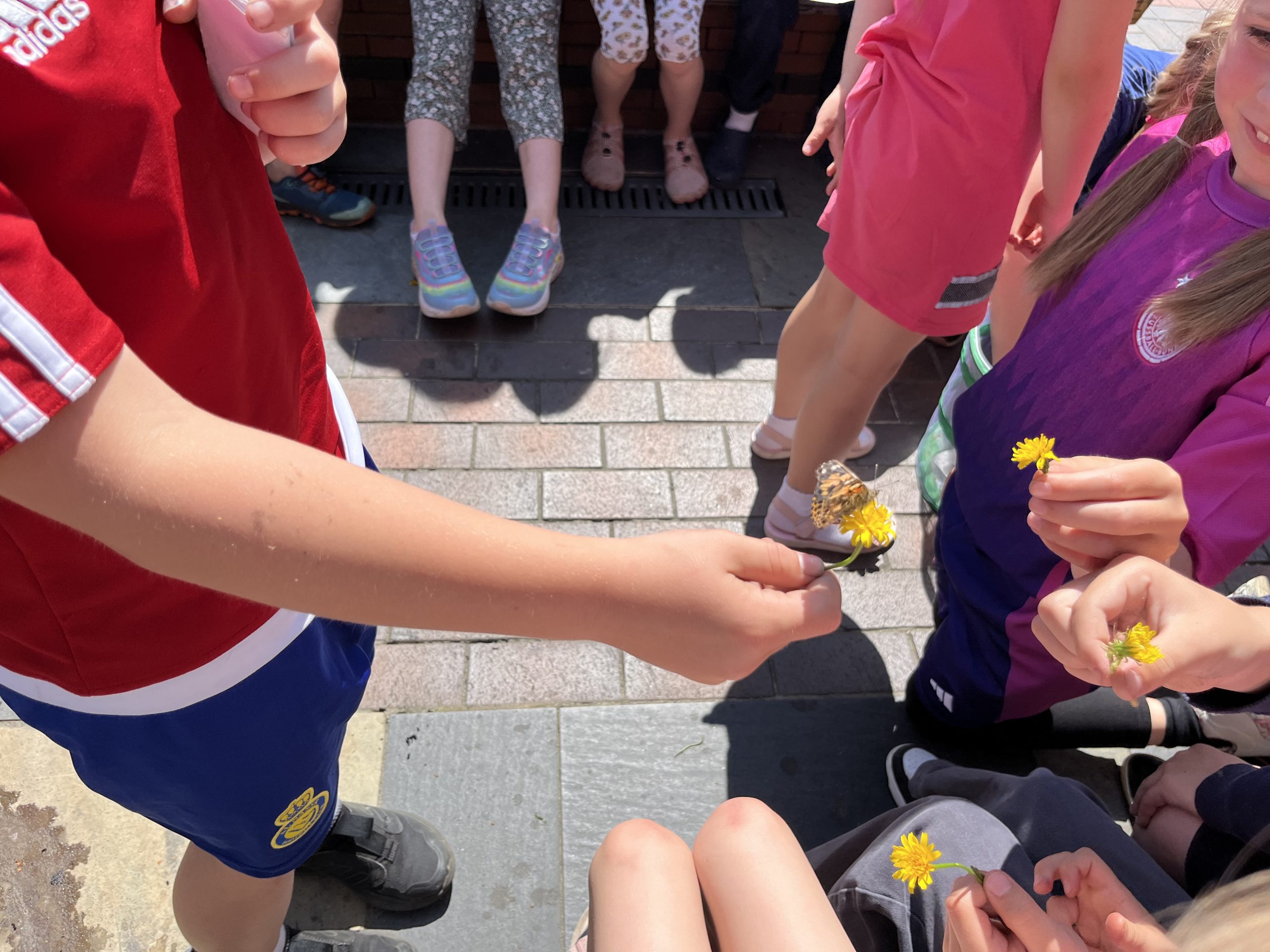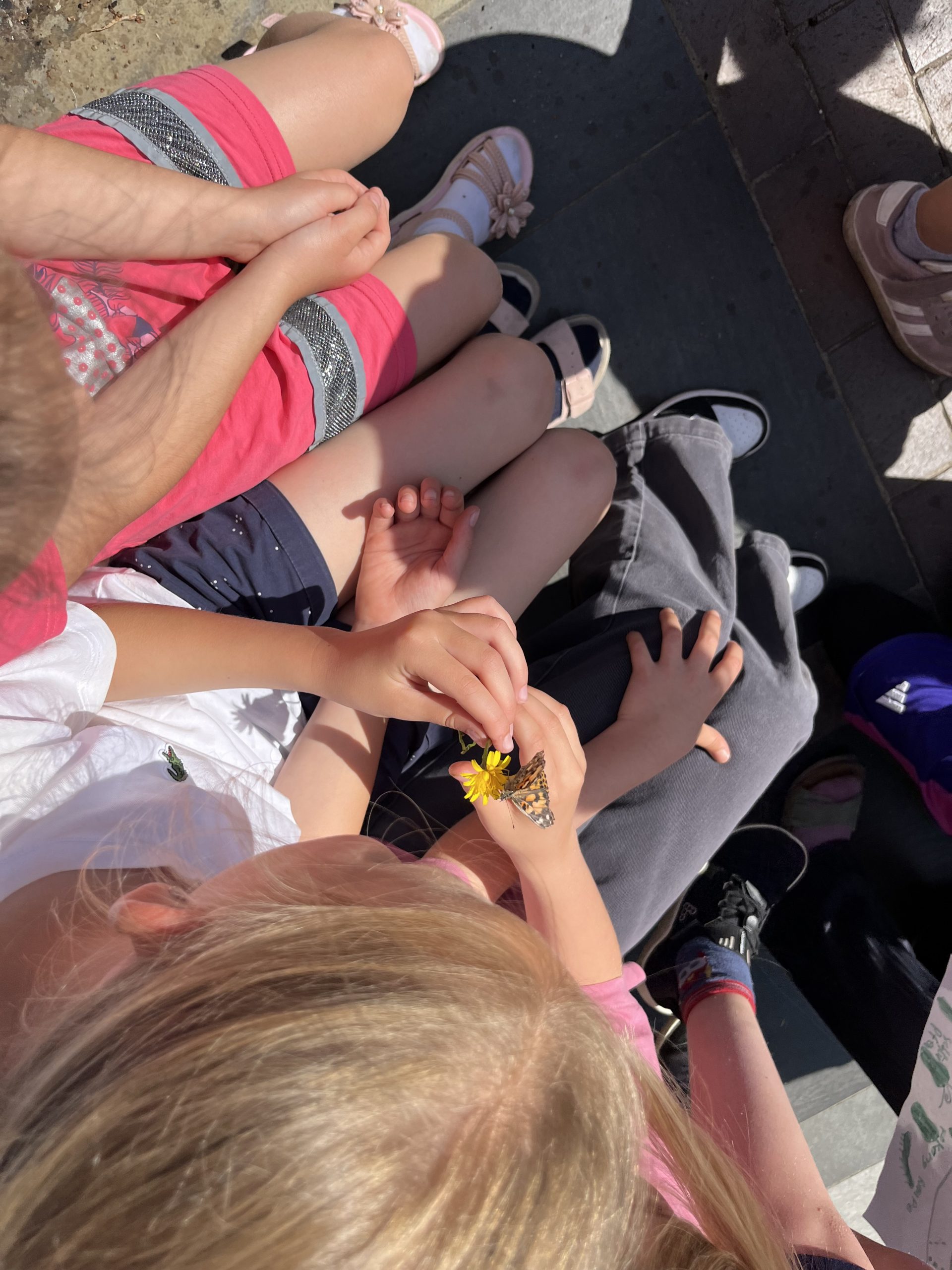 Schnell wurde klar: Schmetterlinge sind nicht nur schön anzusehen, sondern auch wichtige Bestäuber, die Pflanzenvielfalt und Nahrung für viele Tiere sichern. Gleichzeitig erfuhren die Schüler:innen, dass Schmetterlinge durch den Klimawandel bedroht sind – ein Thema, das die Kinder zum Handeln motivierte.