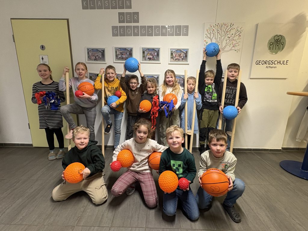 Die Entscheidung fiel auf neue Spielgeräte, darunter vor allem Basketbälle, aber auch Stelzen und Pferdeleinen. Inzwischen sind die bestellten Materialien angekommen – und sorgten sofort für fröhliche Gesichter bei den Kindern. Die neuen Spielgeräte werden den Schulalltag und die Pausen nun noch abwechslungsreicher machen.